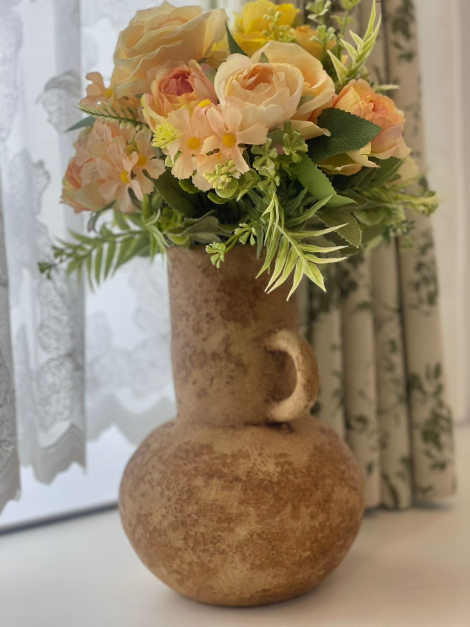 Ce vase est parfait pour accueillir des fleurs séchées, des branches décoratives, ou tout simplement comme pièce maîtresse pour votre intérieur. Sa robustesse et sa finition artisanale en font un objet décoratif durable, apportant une touche d’histoire et de culture à votre espace.