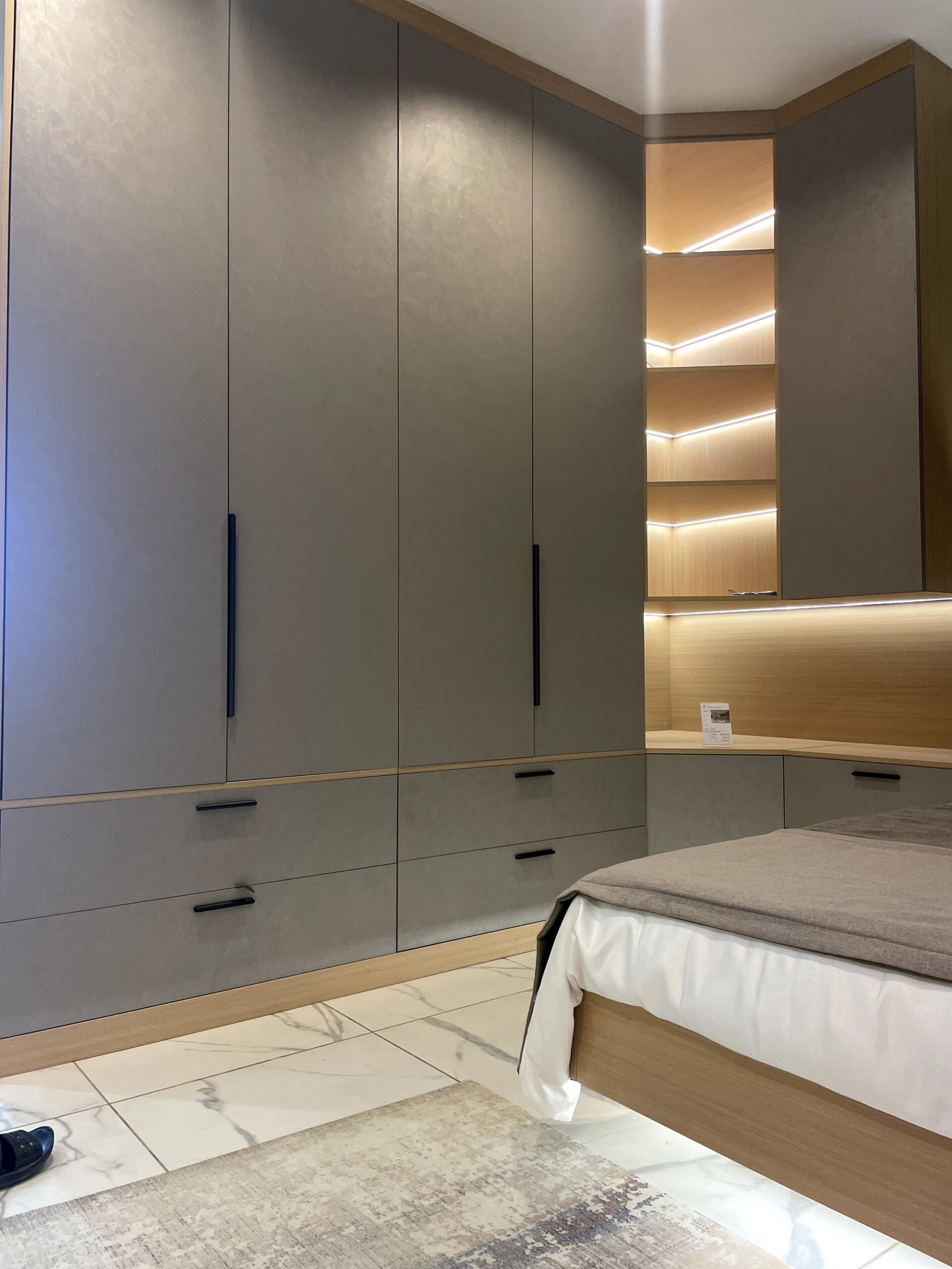 Cet aménagement est un parfait exemple de notre savoir-faire : matériaux nobles, éclairage d’ambiance, ergonomie et design harmonieux, pour transformer une simple chambre en un espace de vie confortable, personnalisé et élégant.