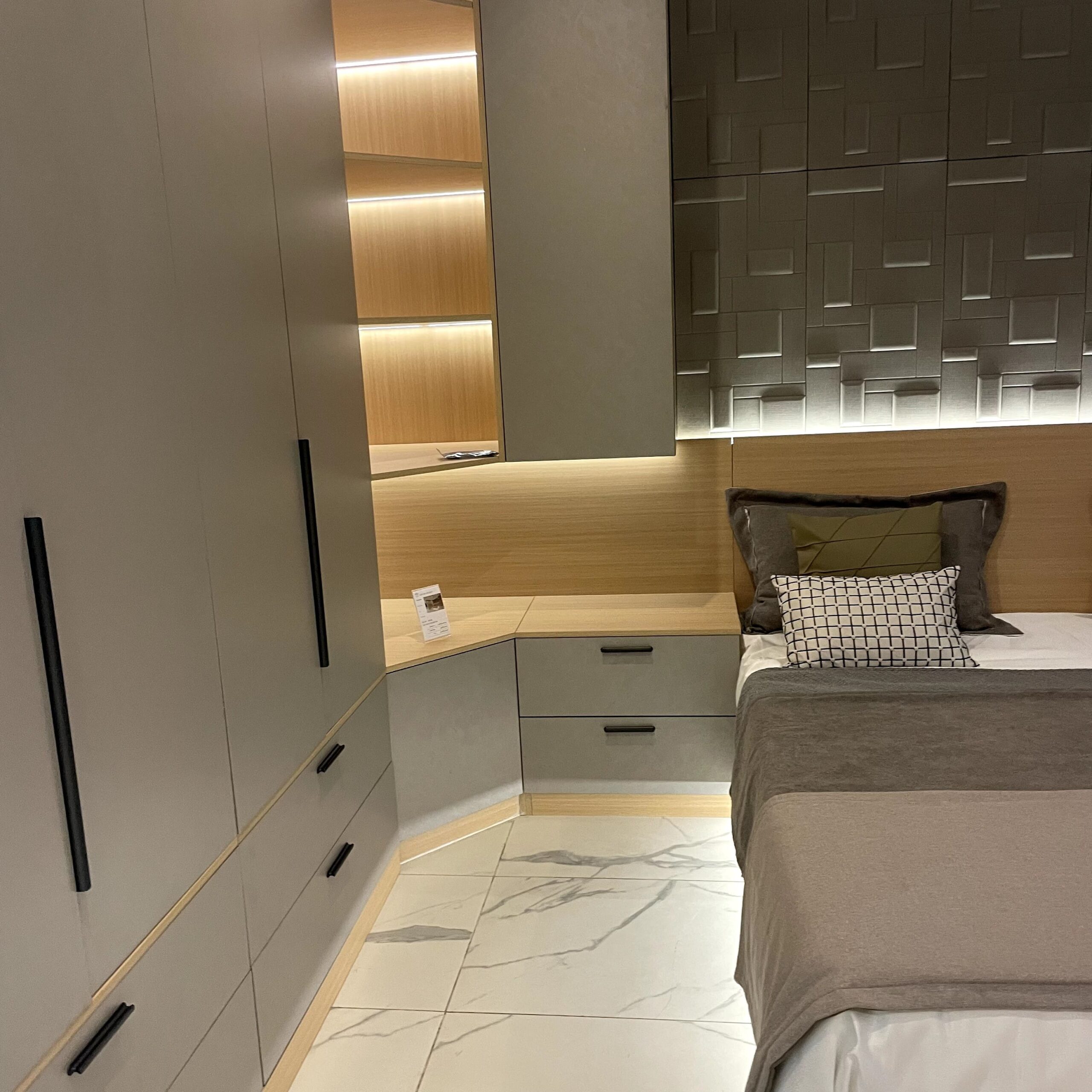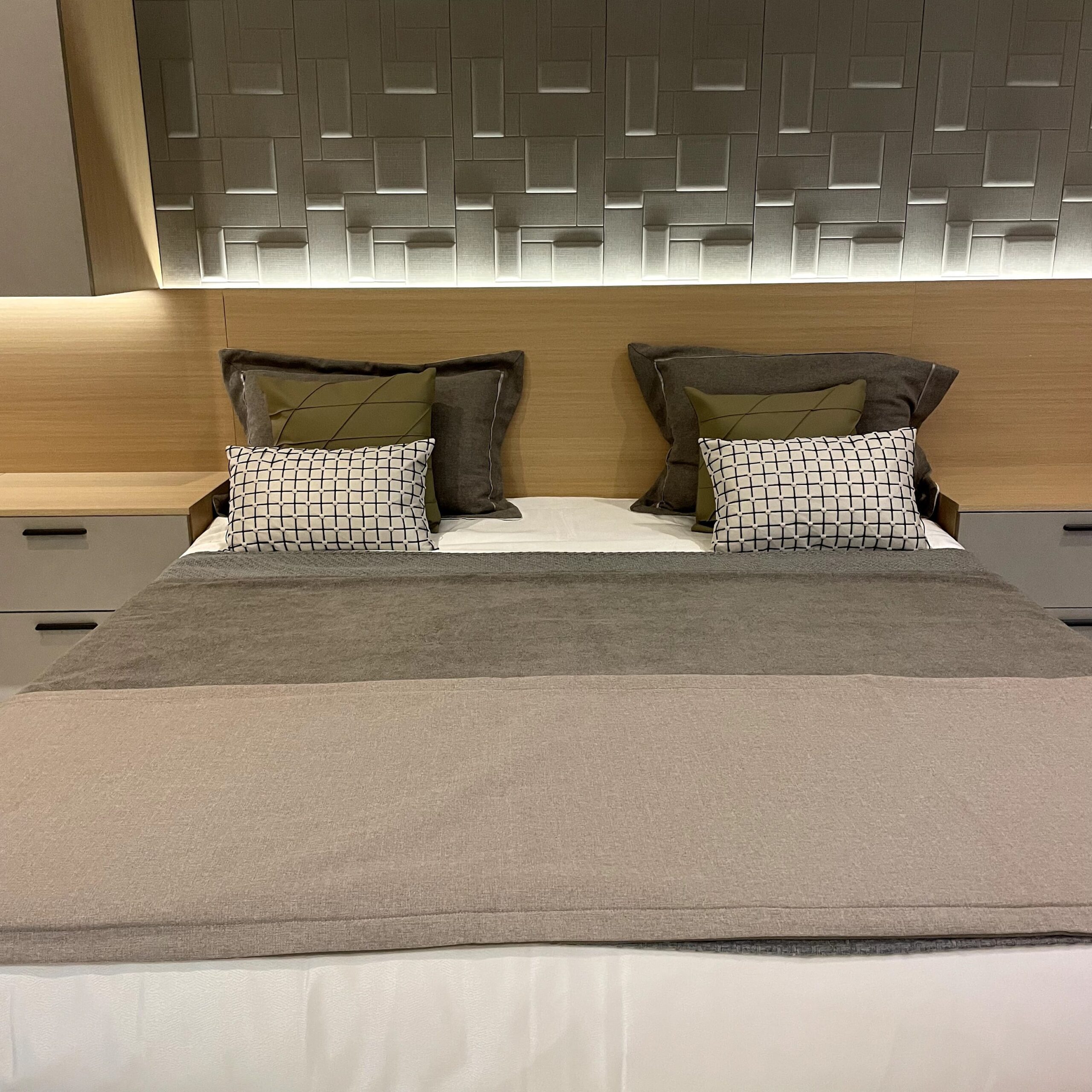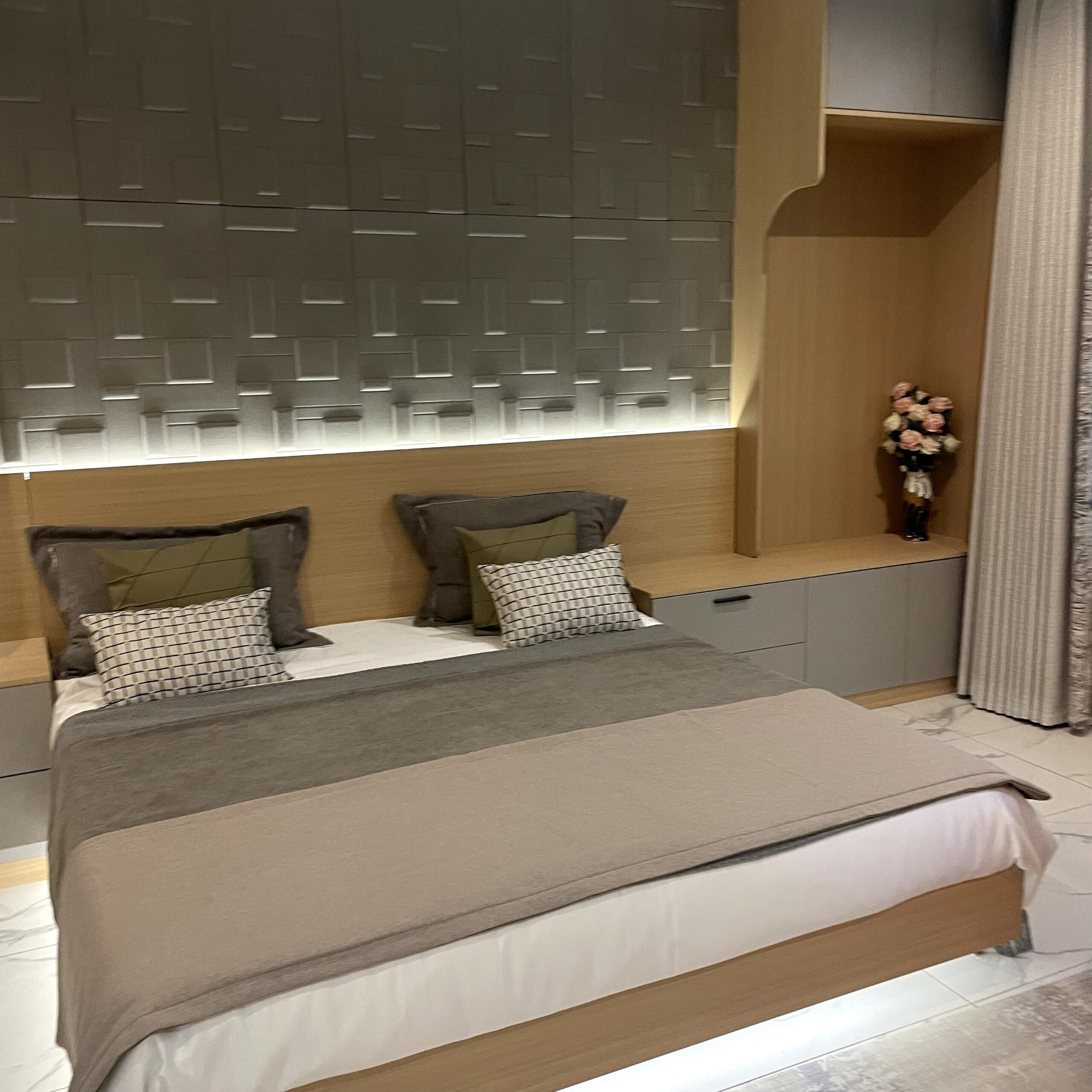 Ce projet incarne une approche complète de l’aménagement d’intérieur, où chaque détail est pensé pour le confort, le style et la fonctionnalité. Dans cette chambre à coucher entièrement conçue sur mesure par SEN BO DESIGN, nous avons harmonisé le mobilier de nuit avec un meuble TV intégré, pour un espace cohérent et raffiné.