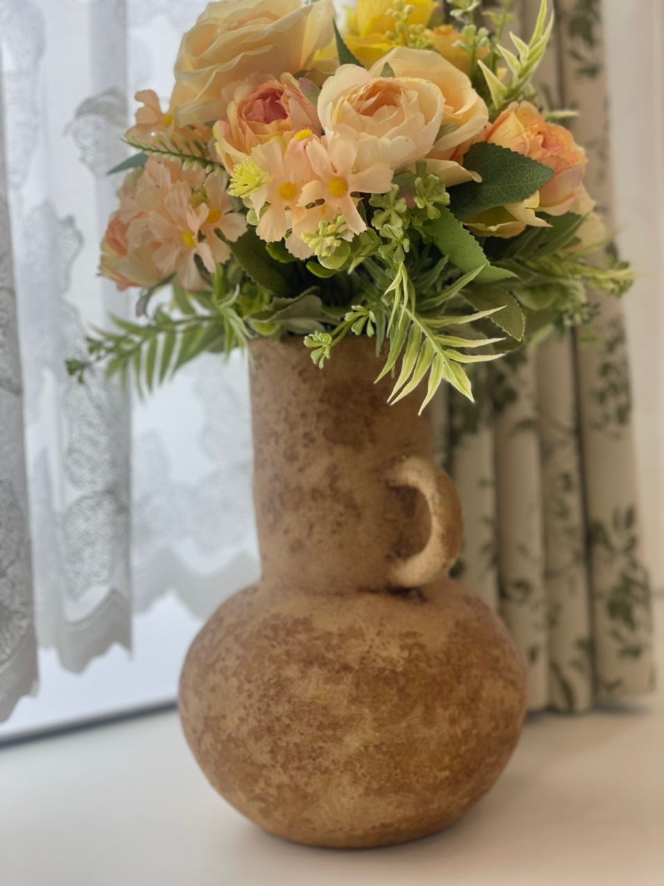 Ce vase est parfait pour accueillir des fleurs séchées, des branches décoratives, ou tout simplement comme pièce maîtresse pour votre intérieur. Sa robustesse et sa finition artisanale en font un objet décoratif durable, apportant une touche d’histoire et de culture à votre espace.
